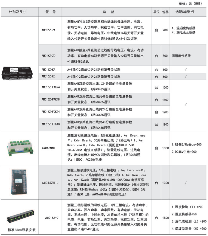 具體型號:AMC16B-3E32. AMC16系列數(shù)據(jù)中心能耗監(jiān)測裝置