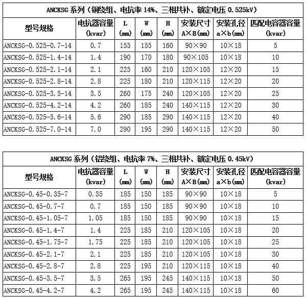 技術要求:適用電容器5kVAR;7%電抗率;銅芯