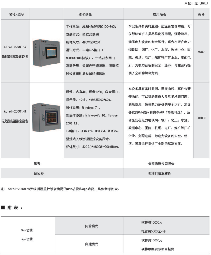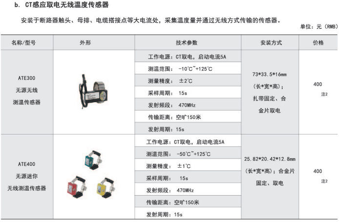 適用于高低壓開關(guān)柜內(nèi)電纜接頭、斷路器觸頭、刀閘開關(guān)、高壓電纜中間頭、干式變壓器、低壓大電流等設(shè)備的溫度監(jiān)測。訂貨范例: