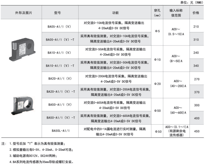 BA10-AI   測量范圍   AC 0~(8~50)A