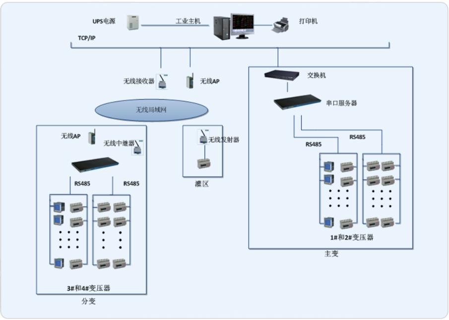 由于廠區(qū)大部分為防爆區(qū),不允許大規(guī)模施工,所以灌裝區(qū)、分變和主變之間均采用無線AP通信。