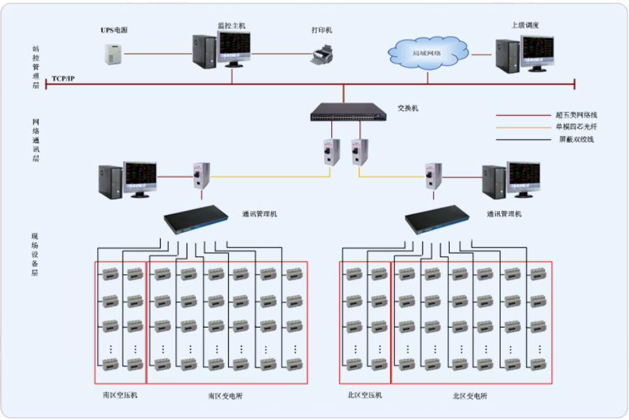 本項(xiàng)目為耐世特汽車針對(duì)南北區(qū)變電所和空壓機(jī)回路設(shè)置的配電所電力監(jiān)控系統(tǒng)。根據(jù)配電系統(tǒng)管理的要求,ACREL-2000電力監(jiān)控系統(tǒng)對(duì)耐世特南北區(qū)兩個(gè)廠房的2個(gè)變電所內(nèi)的低壓配進(jìn)出線和車間里5臺(tái)大型空壓機(jī)的配電回路進(jìn)行監(jiān)控,以保證用電的安全和可靠。通過組建系統(tǒng)網(wǎng)絡(luò),實(shí)時(shí)監(jiān)測(cè)變電所內(nèi)各個(gè)回路的電流、電壓、功率、開關(guān)狀態(tài)等電參量,由此達(dá)到變電所少人值守或無人值守的智能化管理。