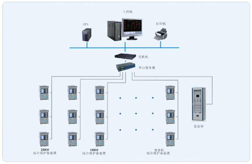 本項(xiàng)目有兩路35KV電源進(jìn)線,經(jīng)兩臺12500KVA變壓器變壓為10KV對項(xiàng)目進(jìn)行供電,系統(tǒng)采用Acrel-2000型電力監(jiān)控系統(tǒng),整個系統(tǒng)采用網(wǎng)絡(luò)分布式結(jié)構(gòu),監(jiān)控主機(jī)2層變電所值班室,綜合保護(hù)裝置、直流屏、多功能儀表等設(shè)備采用RS485總線組網(wǎng)接入變配電站內(nèi)的數(shù)據(jù)采集器,進(jìn)而接入變電站值班室電力監(jiān)控主機(jī)。該項(xiàng)目實(shí)現(xiàn)了上海徐工工程機(jī)械有限公司變電站電力系統(tǒng)的智能管理。