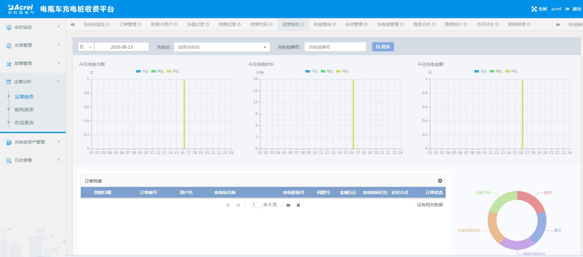 充電價格策略管理,預收費管理,賬單管理,營收和財務相關報表。