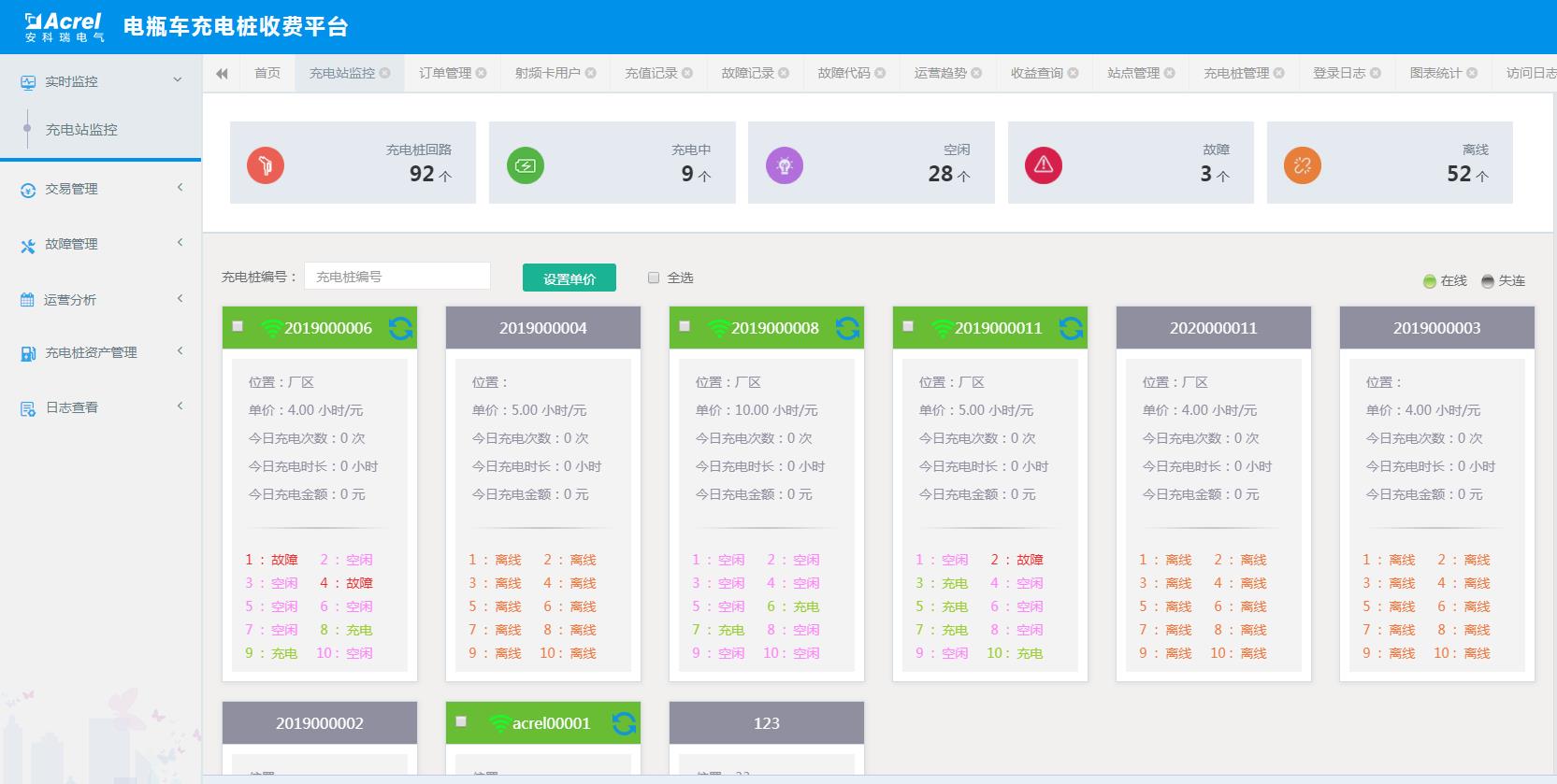 安科瑞電瓶車充電樁通過GPRS模塊與云端進行通信和數據交互。系統能夠對電瓶車充電樁的日常狀態、充電過程進行監控;實現充電支付對接:支持投幣、刷卡、微信支付等多種支付方式,保證支付交易過程的完整性,對充電過程中的異常情況進行有效預警;實現對下游站級平臺的清算、對賬功能。